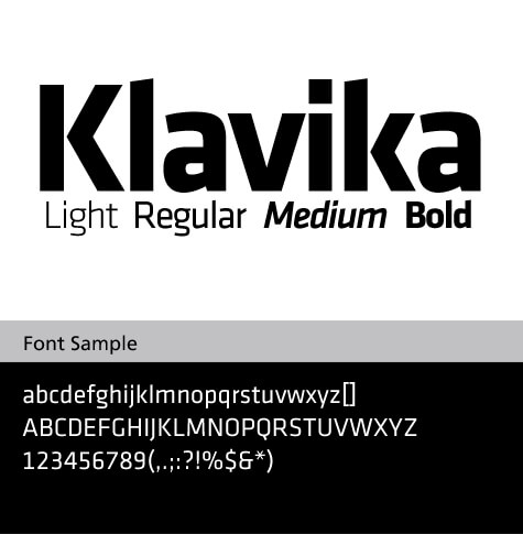 Klavika是有灵活的无衬线字体,便于广泛的编辑和应用与形象设计。