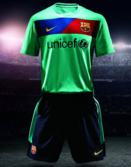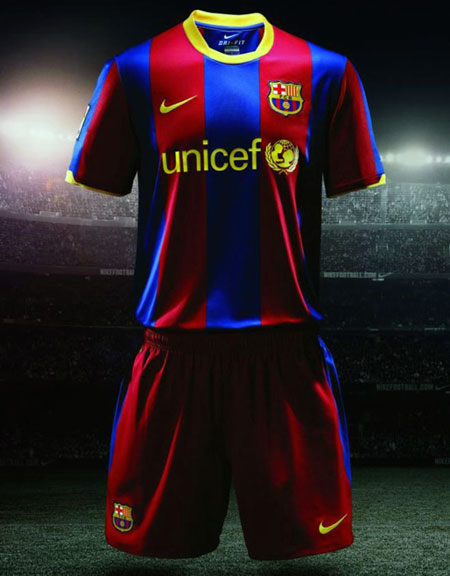 随着大卫比利亚的到来,巴塞罗那队新赛季主场球衣也揭开面纱,醒目的黄色衣领成为新球衣最亮眼的地方,红蓝剑条也由上赛季的窄条变成了宽条,短裤也重拾2005-06赛季的紫红色。新款客场球衣以绿色为主,胸前有红蓝二色的横条。新球衣的详细介绍我们将在稍后奉上。
